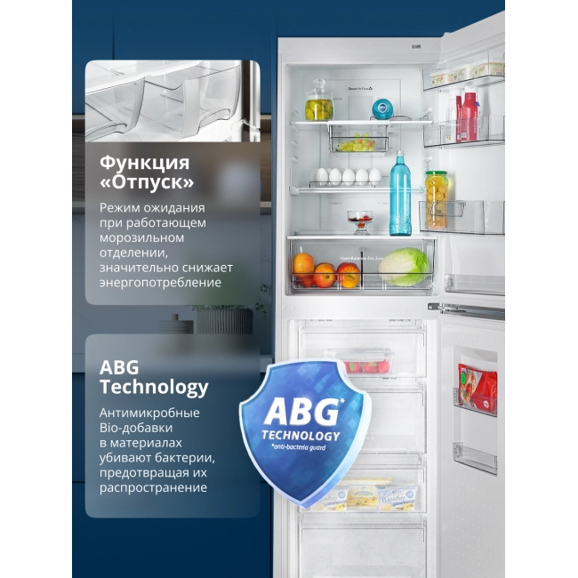 Особая интегрированная форма дверных ручек подчёркивает современный минималистичный дизайн серии. Такая конструкция эргономична и удобна для захвата, а отсутствие выступающих деталей позволит сочетать холодильник с любым кухонным оборудованием