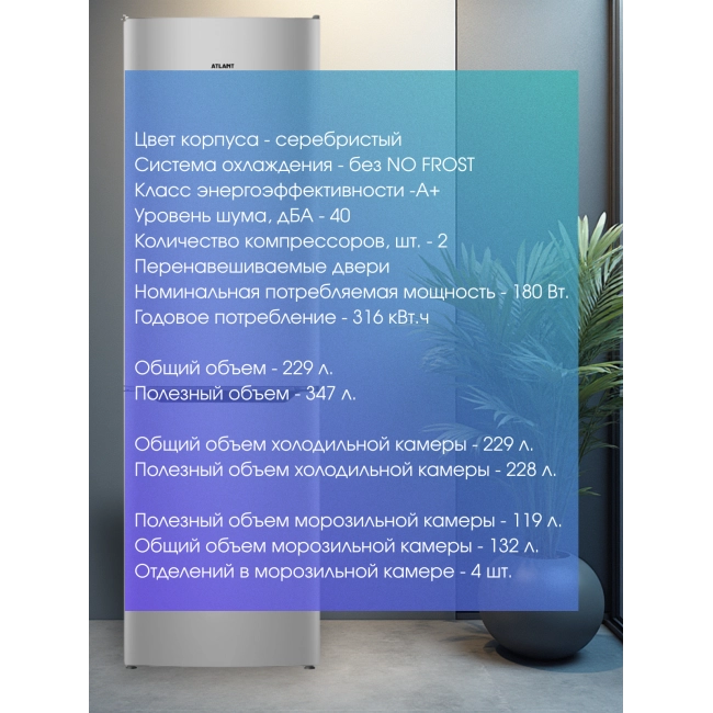 | Количество отделений в морозильной камере, шт. | 4 |