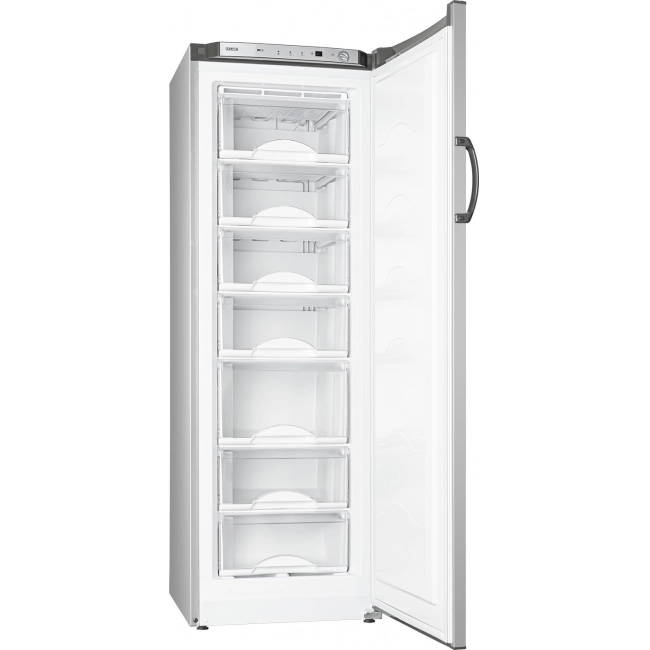 Лаконичные и строгие формы и линии дизайна морозильника подчеркивает вертикальная ручка-скоба