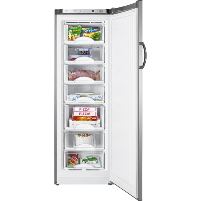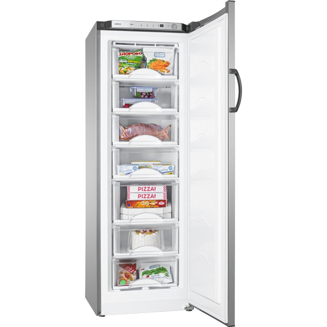 Корзины, наполненные продуктами, легко перемещать вне морозильника, так как на их боковых поверхностях предусмотрены ручки
