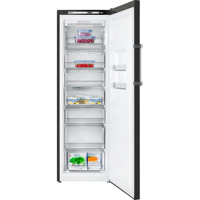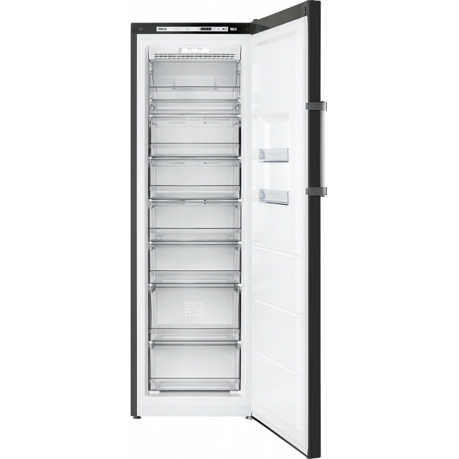 Увеличенная корзина BIG BOX расположена в нижней части морозильника и выполнена из ударопрочной прозрачной пластмассы, в которой можно разместить около 10 кг продуктов